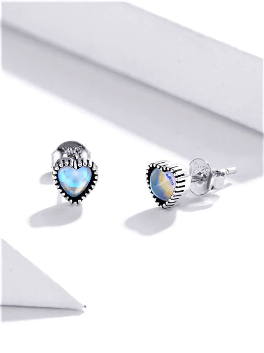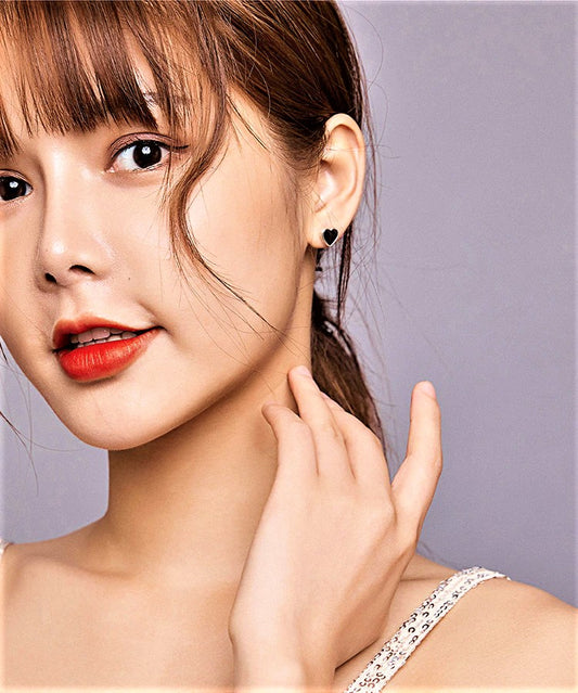 עגילי כסף צמודים לב מושחר