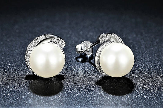 עגילי כסף צמודים פנינה